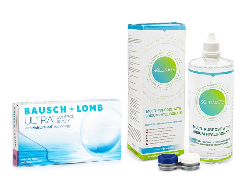 Bausch + Lomb ULTRA (6 läätse) + Solunate Multi-Purpose 400 ml koos läätsekonteineriga