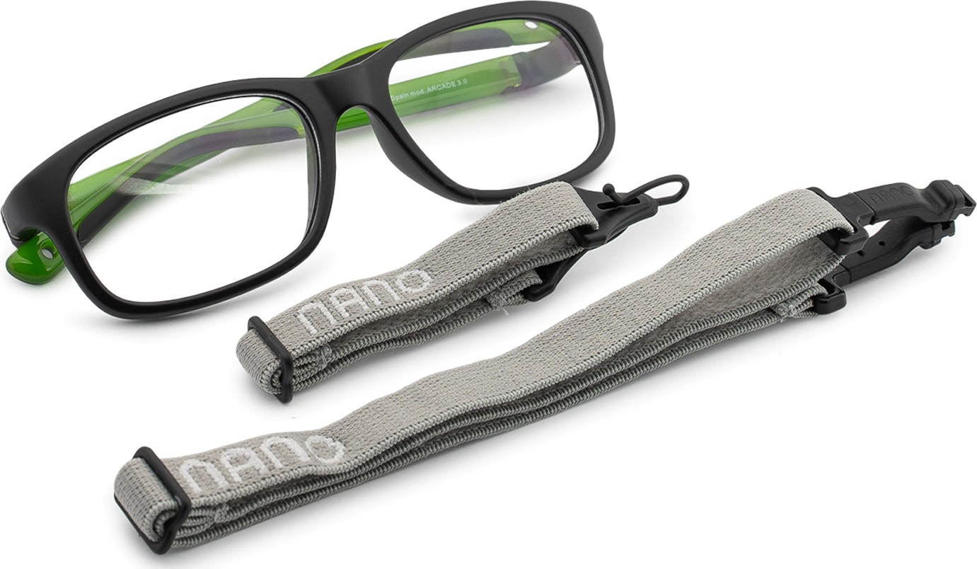 Arcade 3.0-l on kaks reguleeritavat tekstiilrihma, mis vähendavad prillide kaotamise ohtu ja tagavad prillide parema kinnituse peas erinevate laste tegevuste ajal.