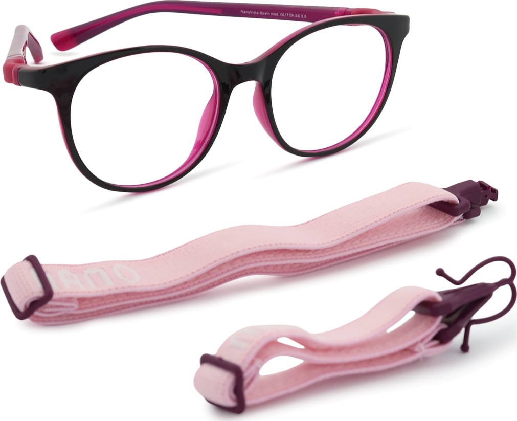 Glitch SC 3.0-l on kaks reguleeritavat tekstiilrihma, mis vähendavad prillide kaotsimineku ohtu ja tagavad parema kinnituse peas erinevate laste tegevuste ajal.