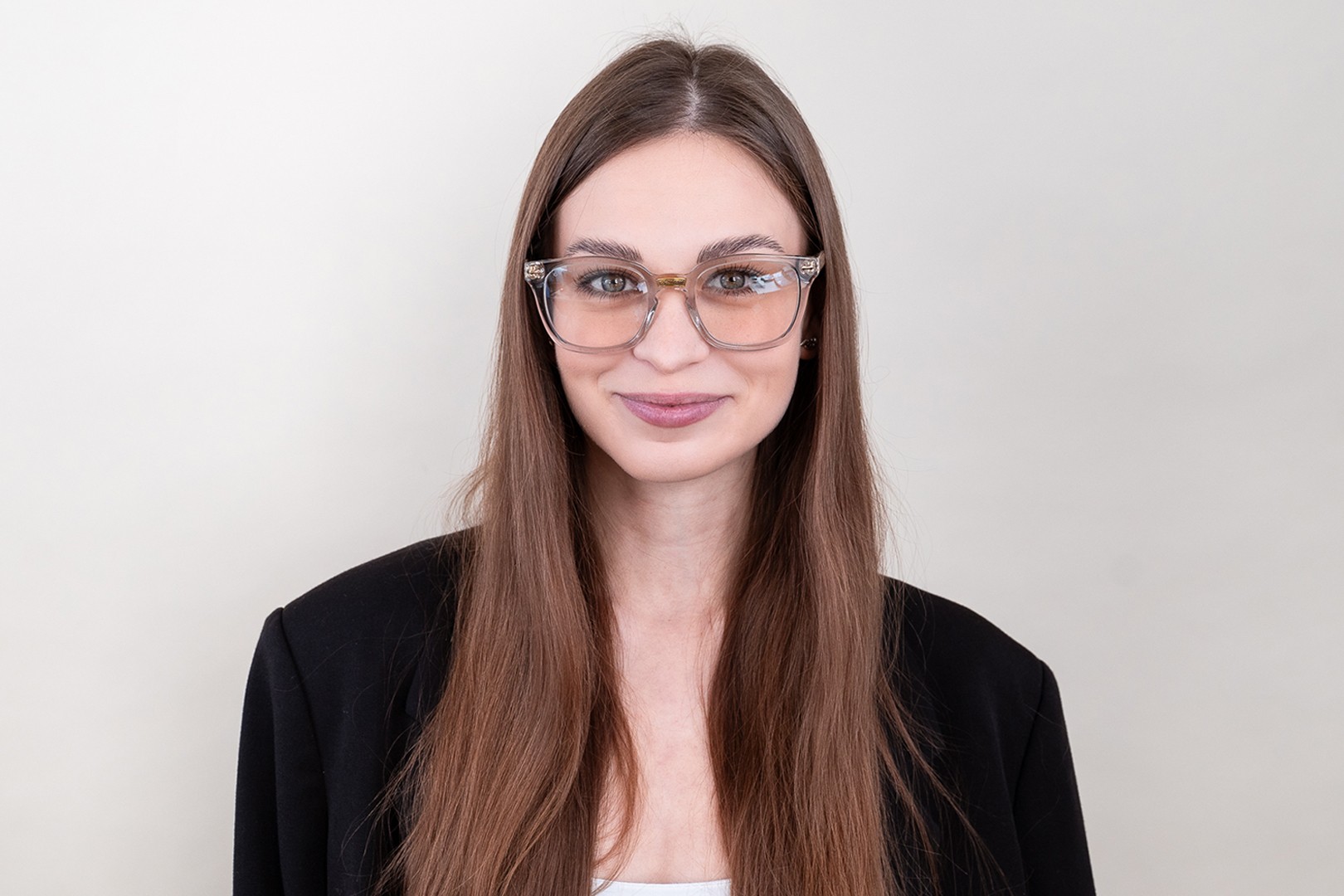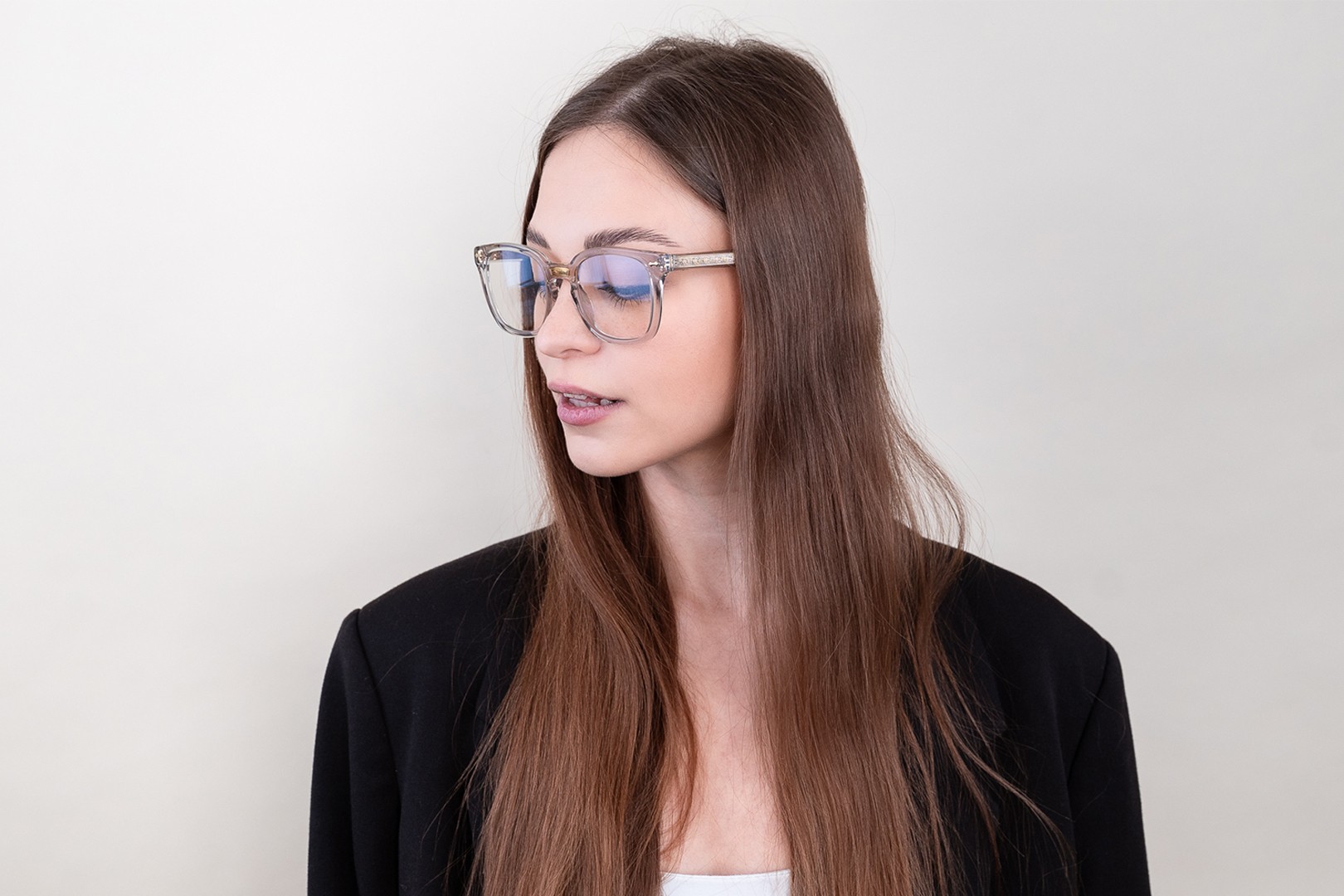 - Raami hall värv sobib ideaalselt jaheda nahatooniga ning punaste, hallide, valgete või tumeblondide juustega.