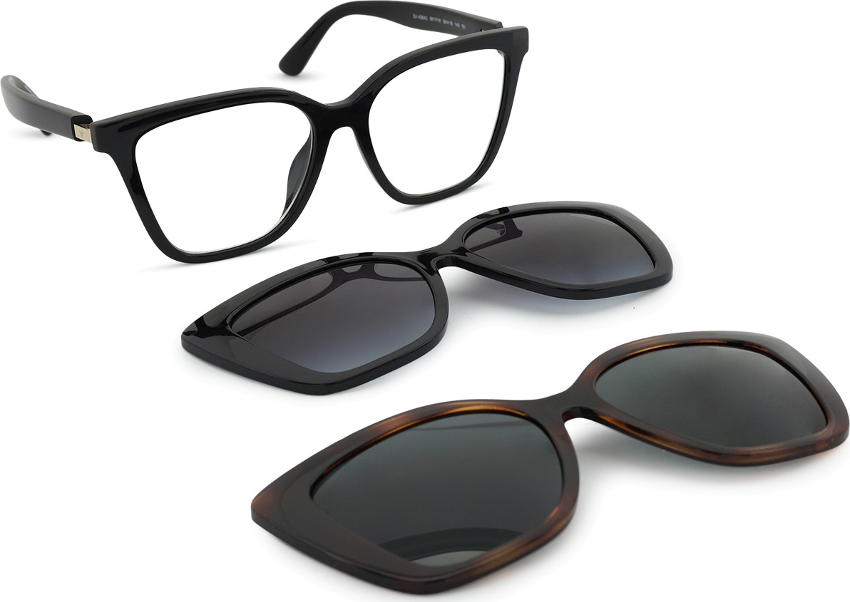 - Очки также включают дополнительную солнцезащитную накладку, которая легко крепится к оправе очков и превращает их в солнцезащитные. Накладка идеально повторяет форму оправы, а ее установка очень быстрая и простая. Однако, если у вас высокие плюсовые диоптрии, необходимо выбрать более тонкую версию линз, чтобы накладка не касалась передней сферической поверхности линз и правильно сидела на оправе.