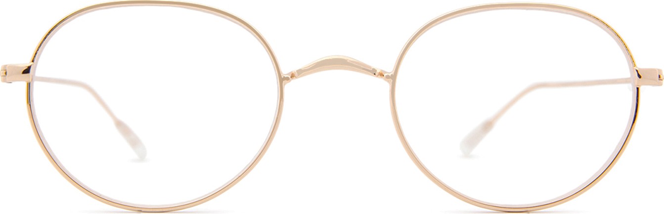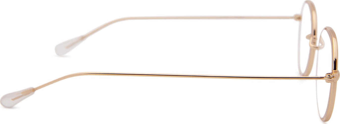 Золотой цвет оправы идеально сочетается с теплым тоном кожи и темно-каштановыми волосами.