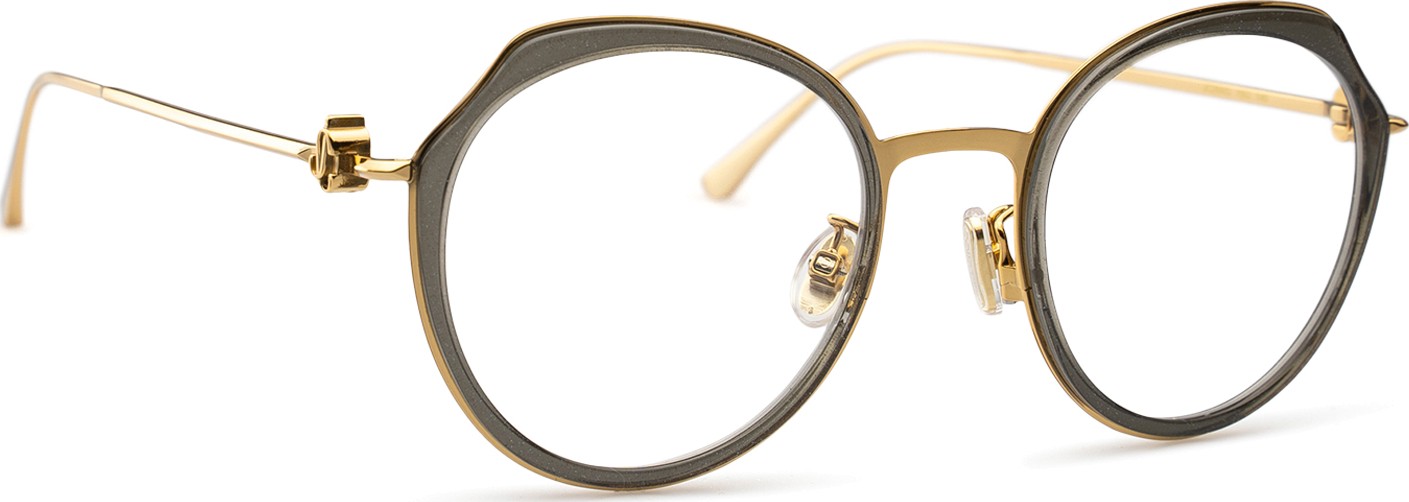 - Золотой цвет оправы идеально сочетается с теплым оттенком кожи и темно- каштановыми волосами.