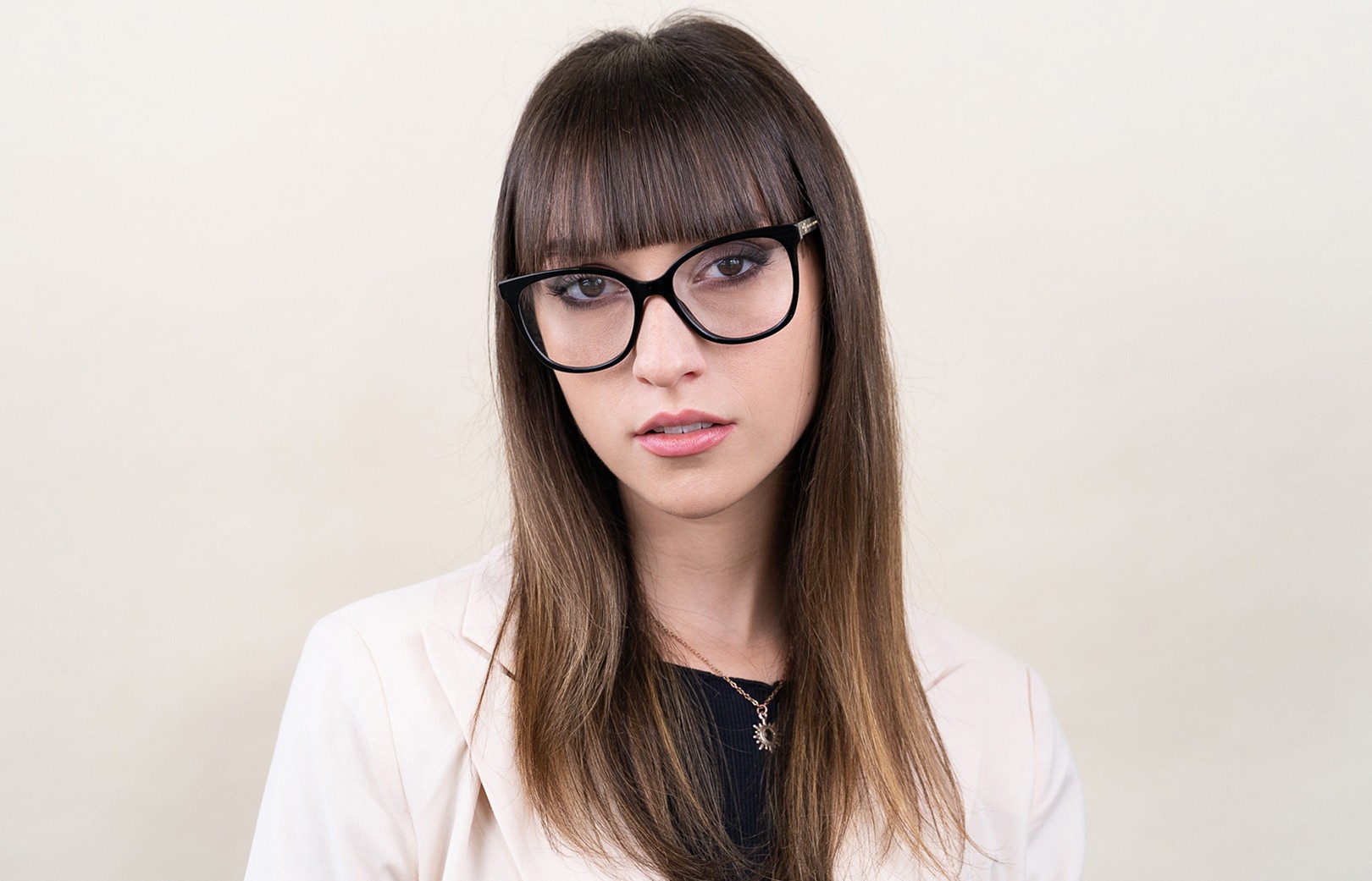 - Черный цвет оправы идеально сочетается с холодным оттенком кожи и светлыми светлыми, светло-каштановыми или черными волосами.