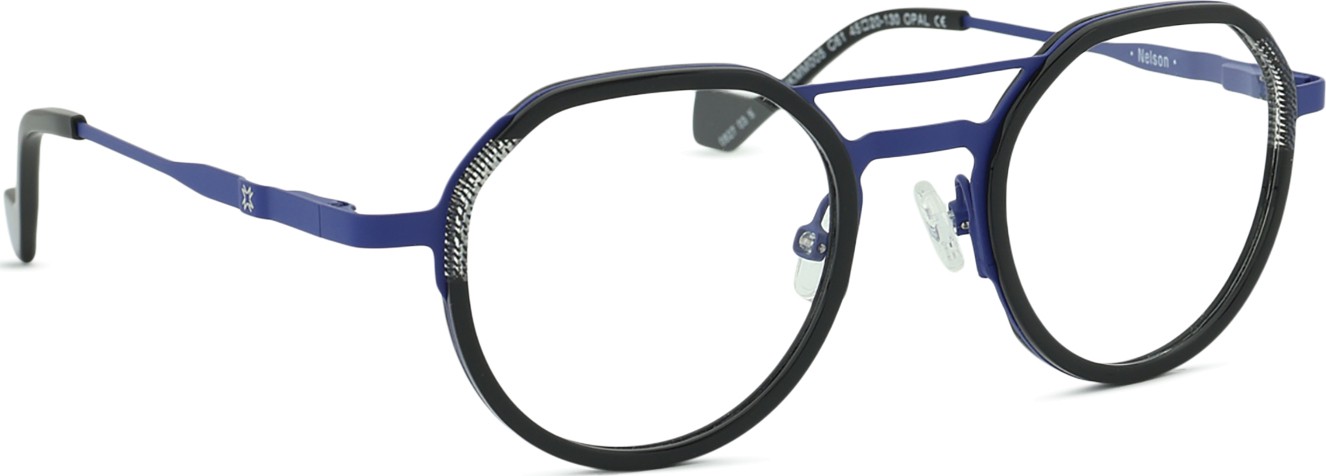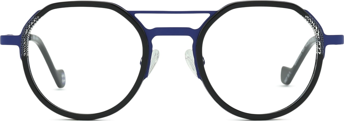Оправа очков изготовлена из комбинации металла и пластика, что обеспечивает высокую прочность и стабильность.