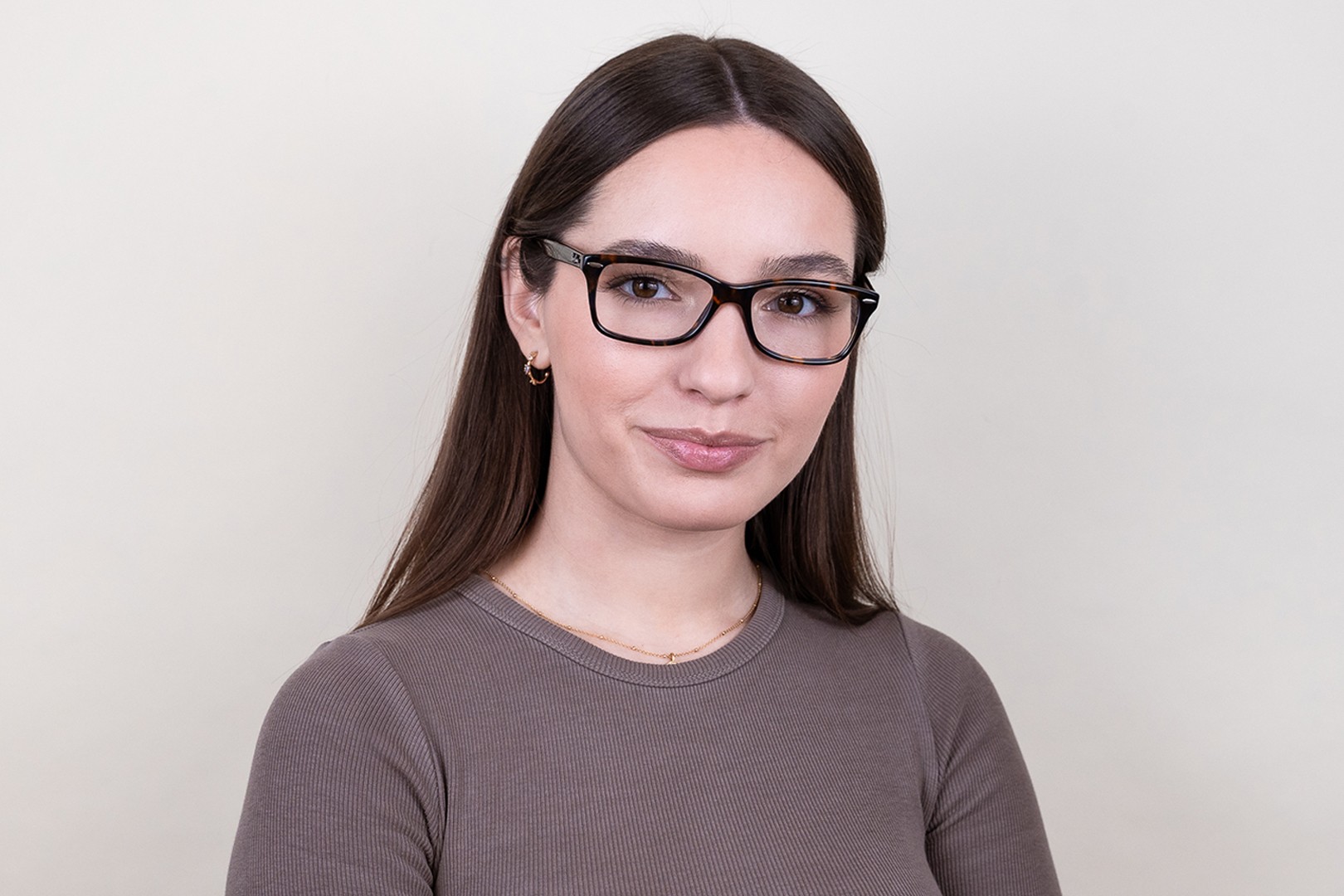 Коричневый цвет оправы идеально сочетается с теплым оттенком кожи и светлыми