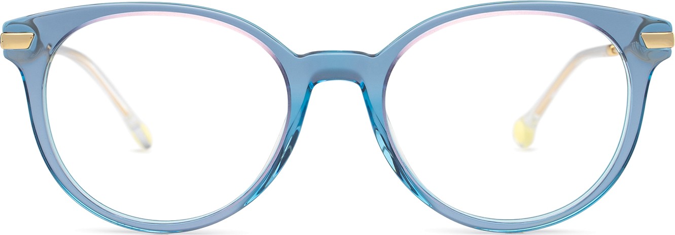 - Синий цвет оправы идеально сочетается с холодным оттенком кожи и светло-каштановыми, черными или светло-русыми волосами.